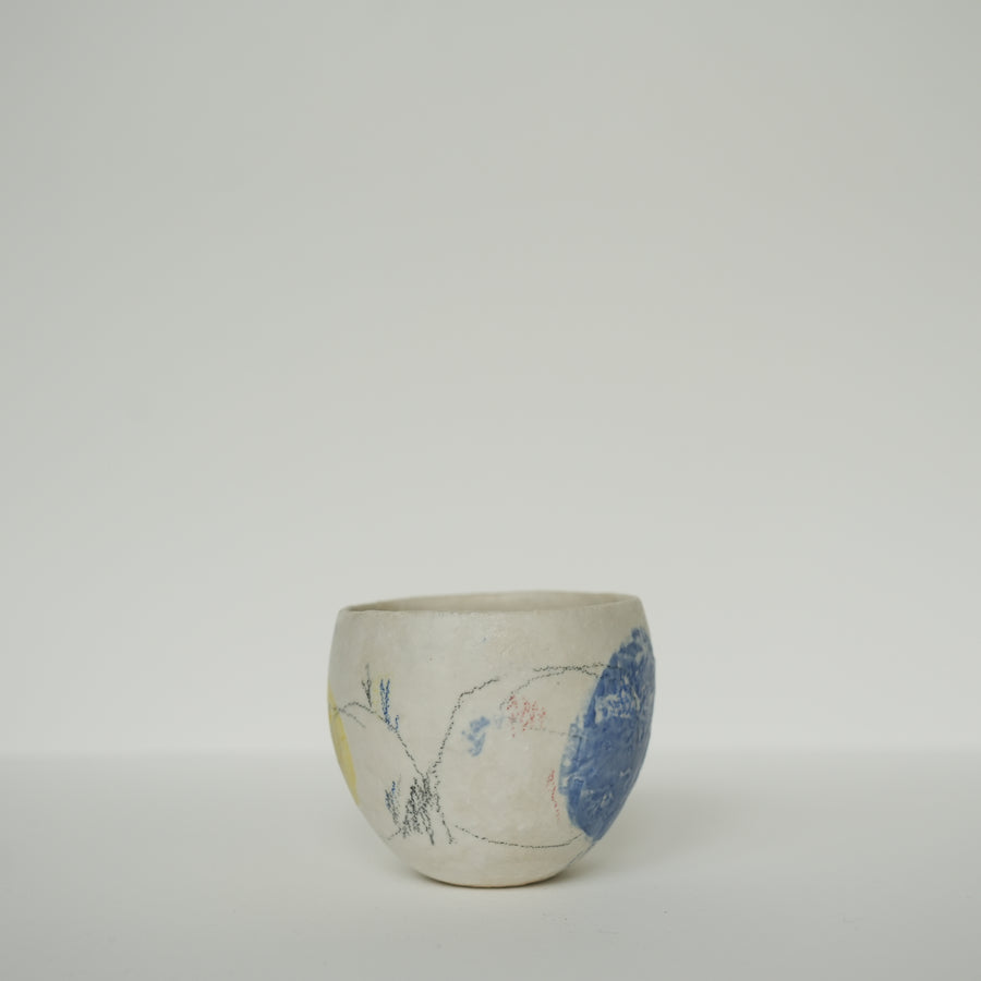 Each piece in our limited-edition collection of egg cups is a one-of-a-kind creation, handmade to celebrate the harmony of texture, color, and form. Crafted with a unique paper-like surface and abstract hand-drawn elements, these cups embody the beauty of imperfection inherent in true artistry. The white porcelain over stoneware, finished with a matte glaze, adds a tactile and organic quality.